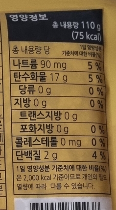 영양성분은 아래와 같이 탄수화물 17g에 칼로리는 75칼로리입니다.