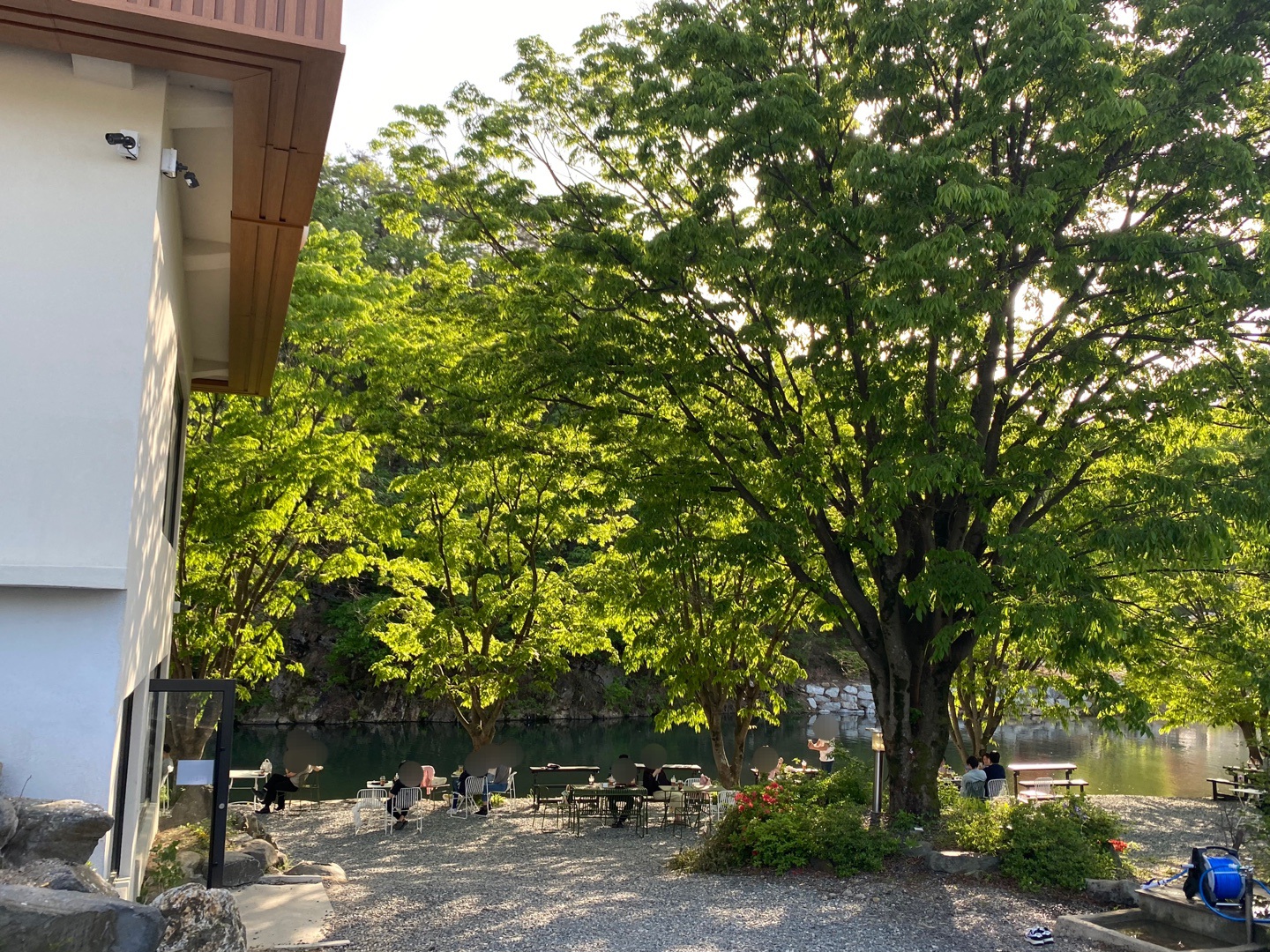 카페건물 가운데쯤으로 가면 넓게 공터가 조성되어있고 그 앞으로 물가쪽으로 계단이 있습니다.