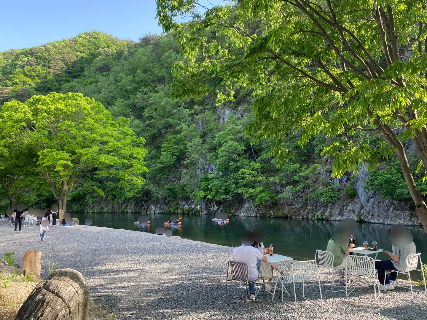 제대로 물놀이나 캠핑을 가기는 힘든 분들이 물가에서 여유를 즐기며